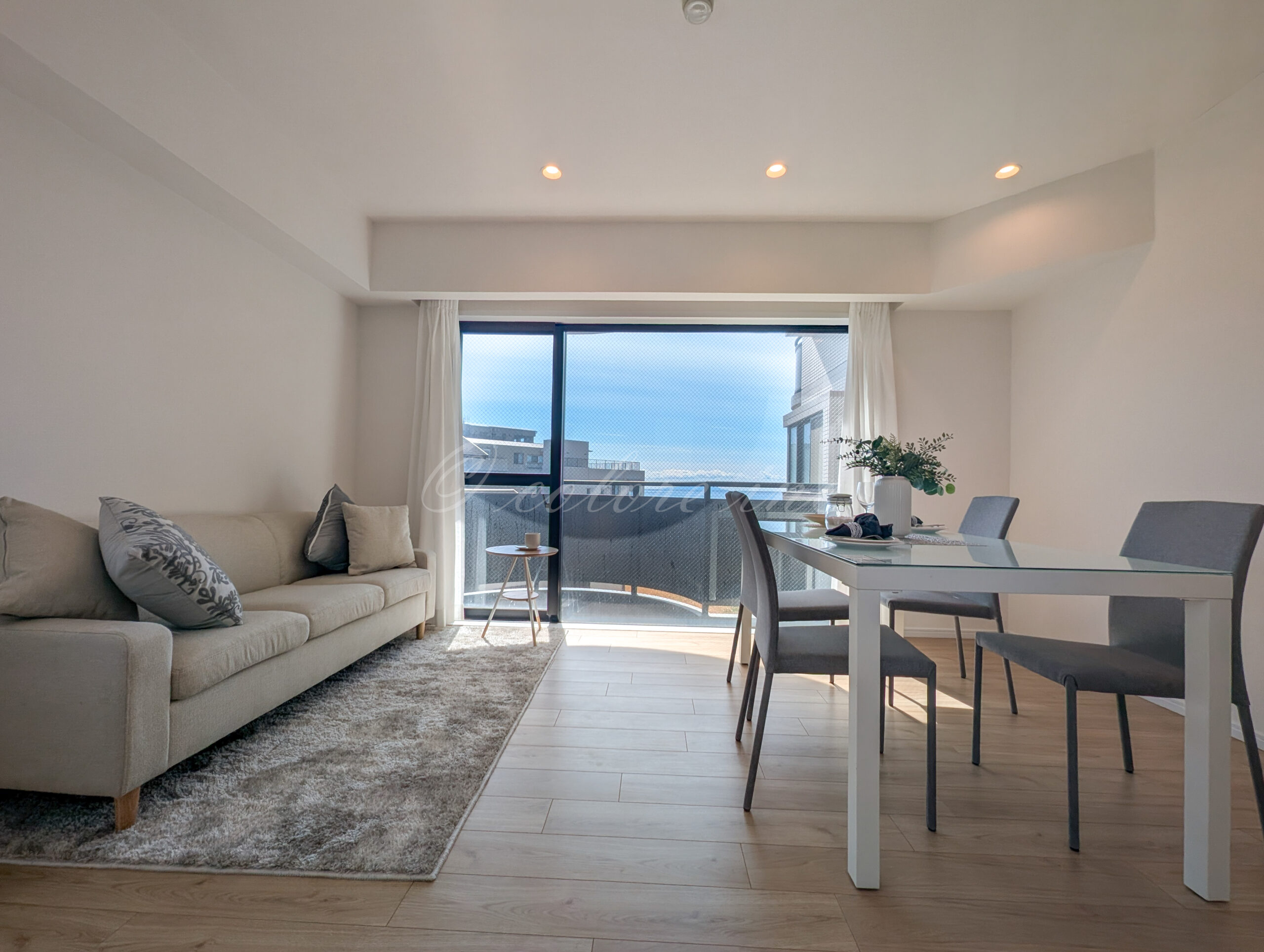 物件の目の前は芝崎海岸が広がり、お部屋のリビングルームからは海が見えます!